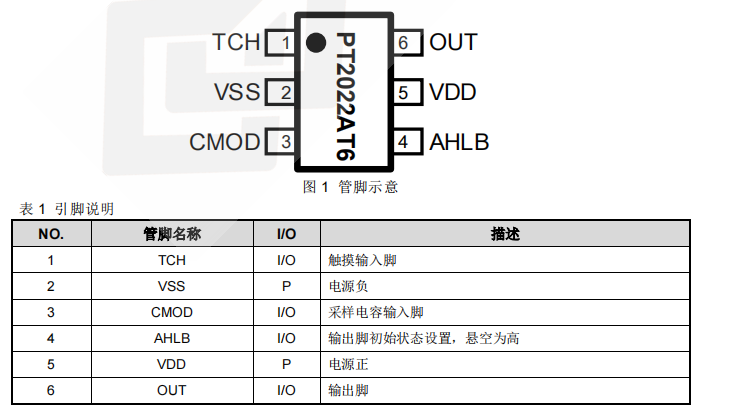 PT2022AT6 是一款电容式触摸控制 ASIC,支持 1 通道触摸输入,1 通道同步型开关输出。具有