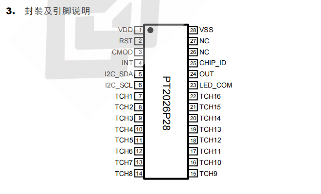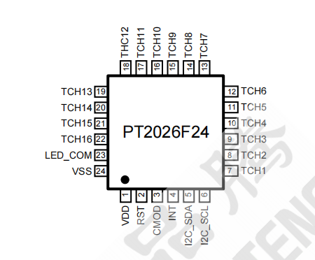 PT2026 是一款电容式触摸控制 ASIC,支持 16 通道触摸输入,I2C 键值输出。可通过 I2C 调
