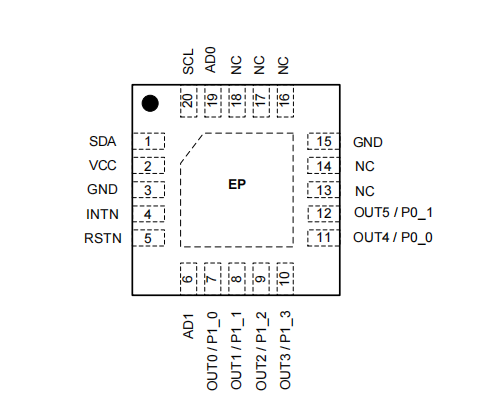 HTR3310是一款10路多功能LED驱动器和GPIO控制器,2.5V~5.5V电源供电。10个I0端口中的任何一个都可以配置为LED模式或GPIO模式。此外,任何GPIO都可以单独配置为输入或输出。通电后,10个I0端口配置默认为GPIO输出默认状态根据AD0和AD1决定。所有配置为输入的I0端口都会持续监控状态变化,并具有8us的防抖动时间,10口的变化由INTN输出指示。当GPIO状态通过I2C接口被读取时INTN输出被清除。当I0端口配置为LED模式时,可以通过I2C接口将LED驱动器的电流设置在0~lAx之间,并可以以该值除以256步进行线性调光。默认最大电流(lmAx)为37mA,可在全局在控制寄存器中更改IMAX。