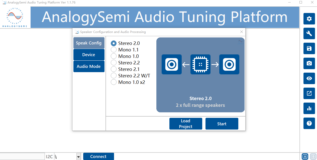 四、调试平台,根据声道选择进行调试。