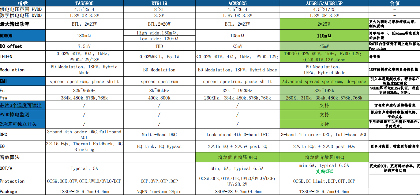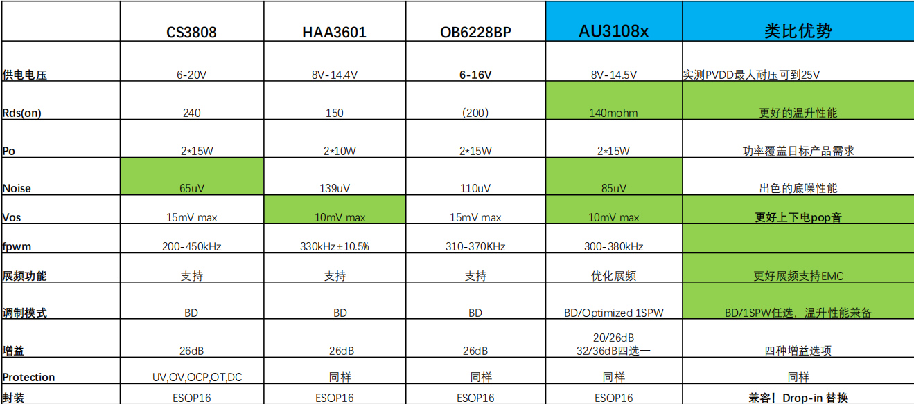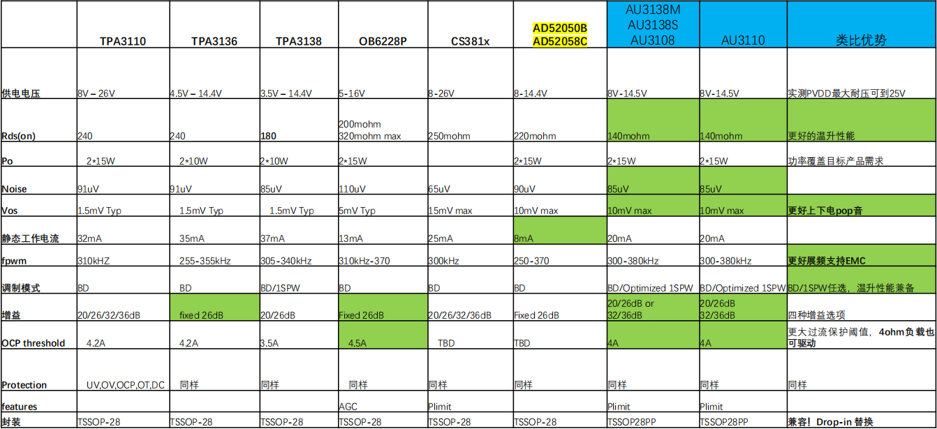 TPA3110 AD52058 TPA3138 OB6228P竞品分析;