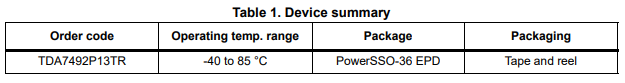 Description The TDA7492P is a dual BTL class-D audio amplifier with single power supply, designed for LCD TVs and monitors. Thanks to the high efficiency and exposed-paddown (EPD) package no heatsink is required.