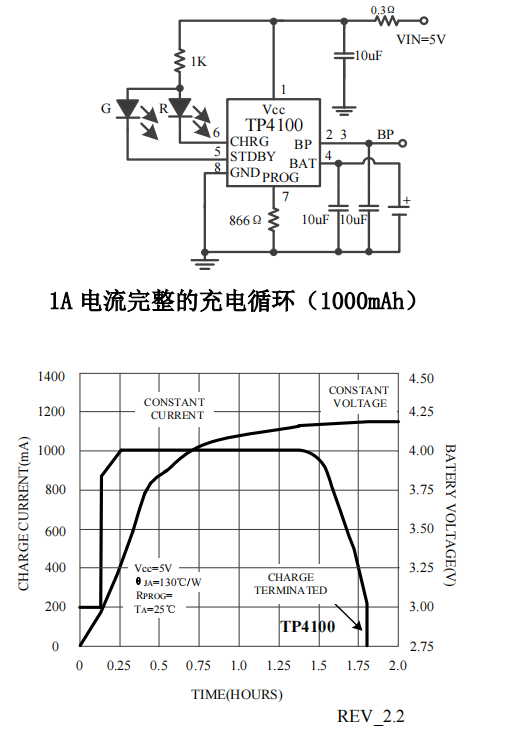 TP4100 单节锂离子电池 1A 充电电路