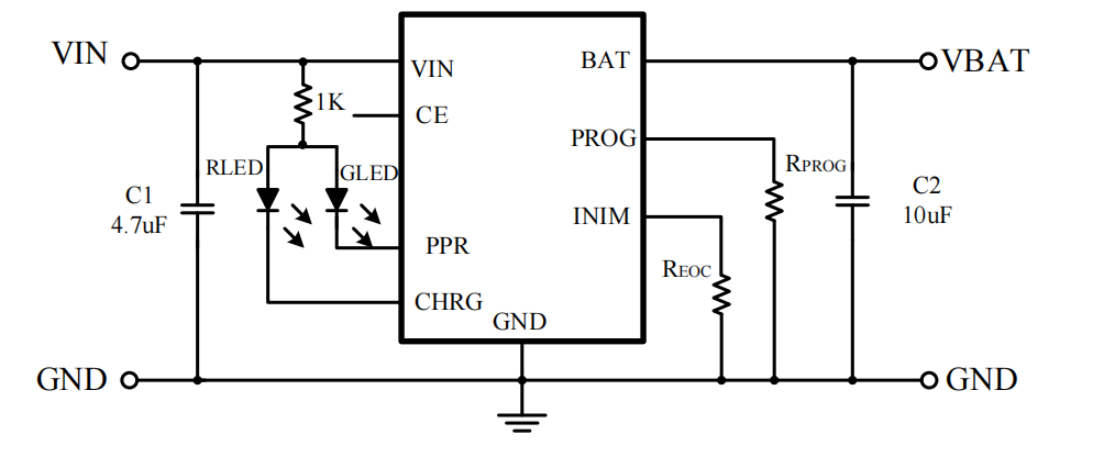 XT4082 的其他特点包括欠压闭锁、自动再充电、2.5V 涓流充电和两个用于指示充电、结束的 LED 状态。