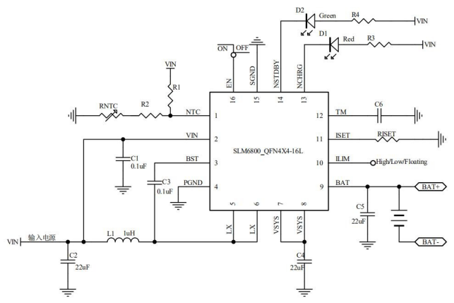 SLM6800包括完整的充电终止电路、自动再充电和一个精确度达±1%的8.4V预设充电电压,内 部集成了防反灌保护、输出短路保护、芯片及电池温度保护等多种功能。