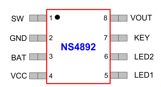 产品名称:NS4892(蓝牙耳机充电仓-线性锂电池充放电管理 IC)