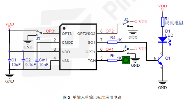 功能复用管脚,既可以用作调光输出 SO2,也可以用作选项输入 OPT2。