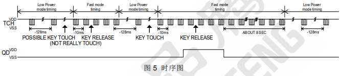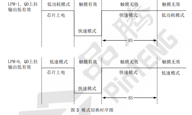 ● 按键唤醒后 8S 无触摸进入低速\低功耗模式