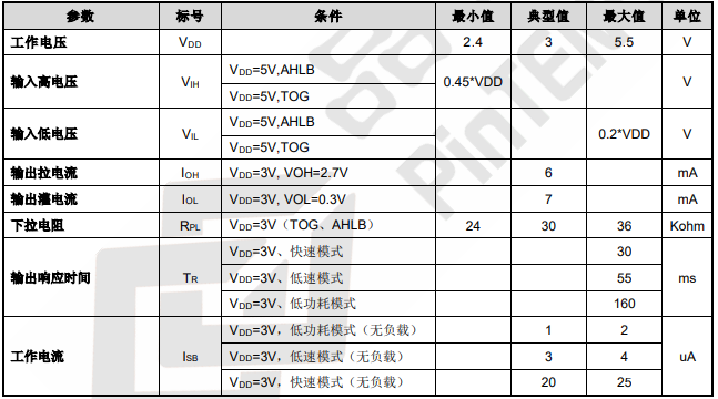 ● 低功耗工作模式:典型值 1uA@VDD=3V/无负载低速工作模式:典型值 3uA@VDD=3V/无负载