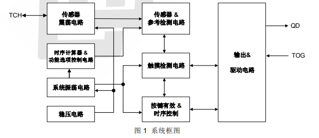 ● 可接外部电容(1~50pF)调整触摸灵敏度