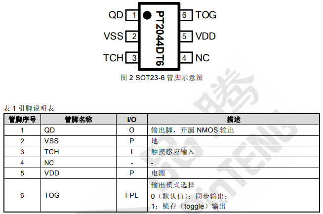 产品名称:PT2044D 单触控单输出 IC