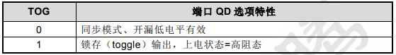 ● TOG 脚位:选择同步输出或锁存(toggle)输出。QD 脚(开漏 NMOS 输出)选项特性
