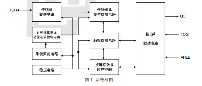 ● 可接外部电容(1~50pF)调整触摸灵敏度
