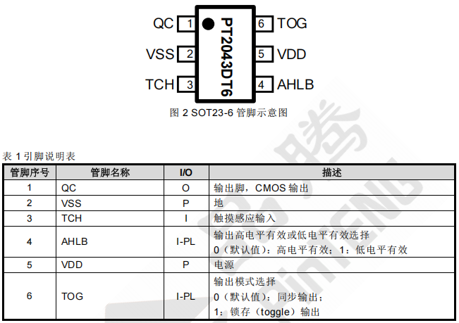 产品名称:PT2043D 单触控单输出 IC