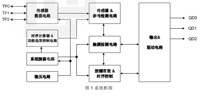 ● 可接外部电容(1~50pF)调整触摸灵敏度
