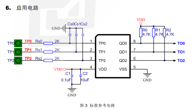 3)改变 Cs0~Cs2(见图 3)容值的大小若其它条件固定不变,根据各键的实际情况调节 Cs