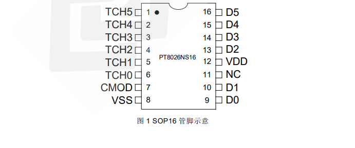 PT8026N 是一款电容式触摸控制 ASIC,支持 6 通道触摸输入,一对一同步 NMOS 开漏输出。算法带有自补偿功能,具有低功耗、高抗干扰、宽工作电压范围、高穿透力的突出优势。