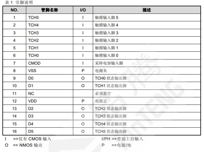 ● 芯片采用一对一直接输出,未按键时为开漏高阻输出,按键为低电平输出