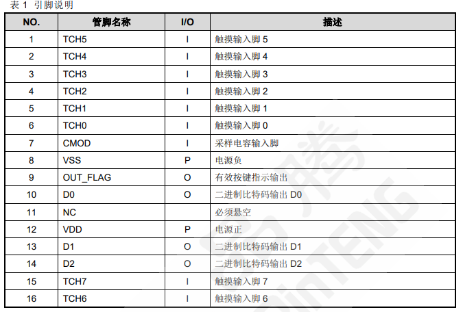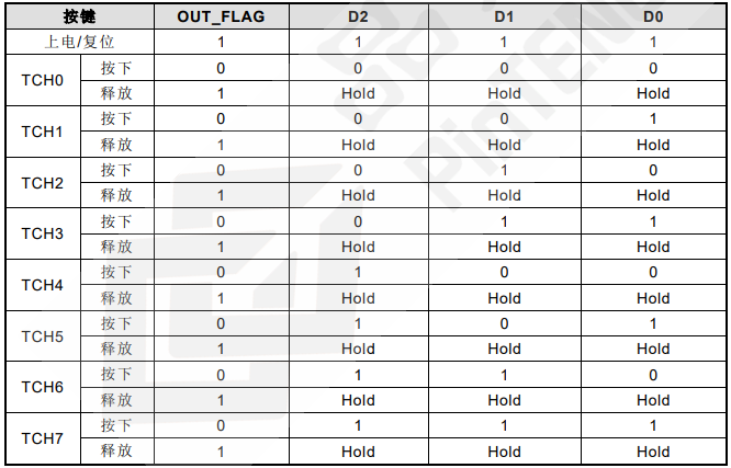 ● 当前触摸按键有效后,BCD 编码输出状态会维持到下次按键才改变