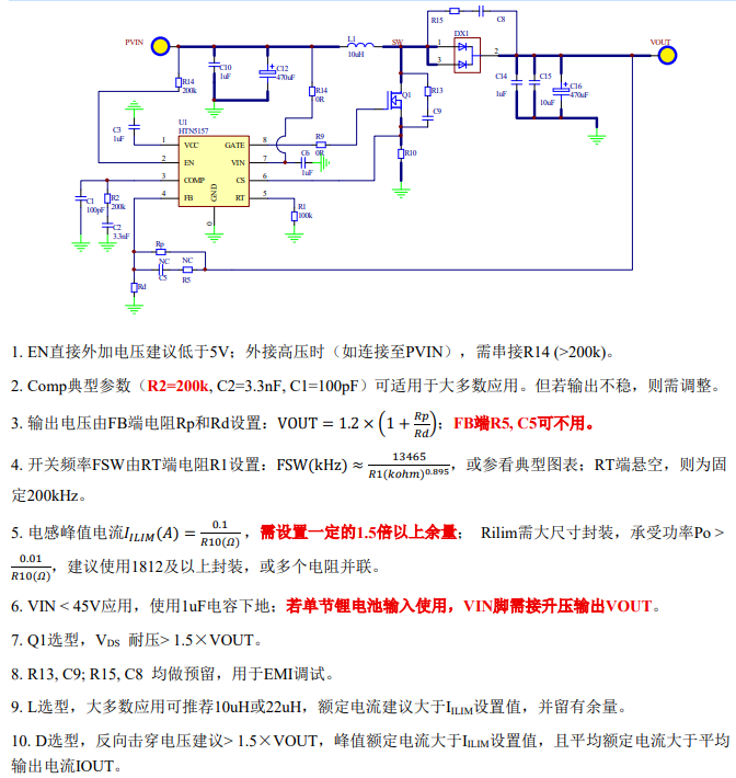 HTN5157采用峰值电流模式控制和外置补偿网络,更简单更灵活的使系统稳定。