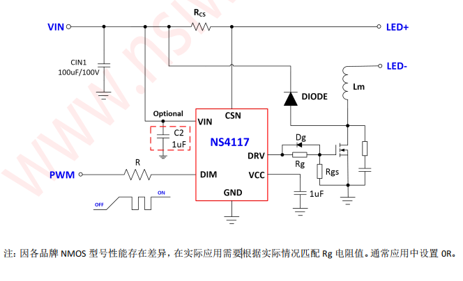产品名称:NS4117X 系列 外置 MOS 管开关降压型 LED 恒流控制器
