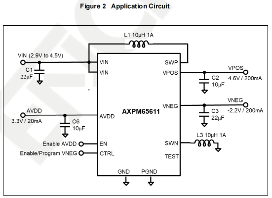 产品名称:AXPM65611 200mA Triple DC-DC Converter with LDO AVDD for Powering AMOLED Displ