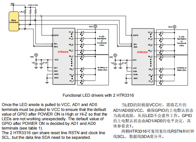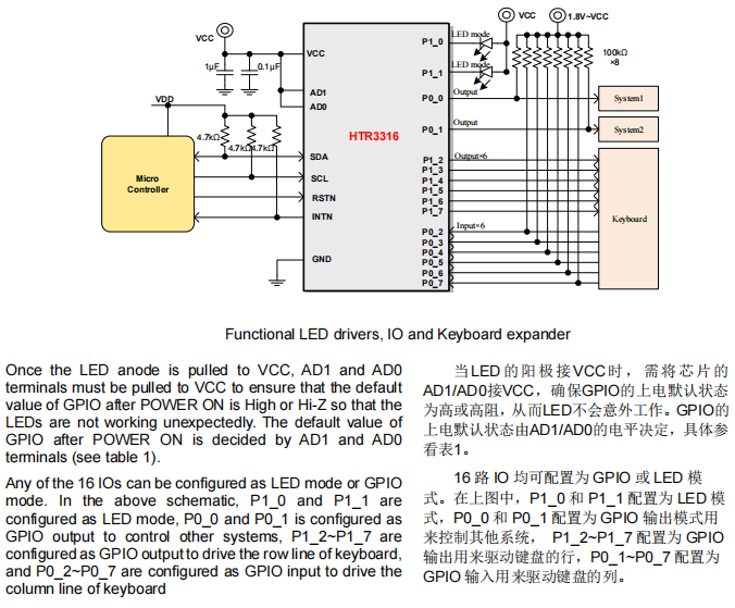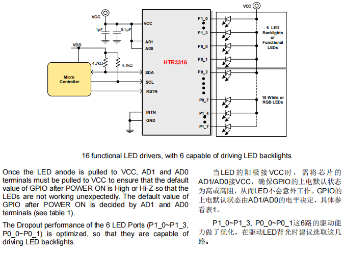 产品名称:HTR3316 16路LED驱动器和GPIO控制器