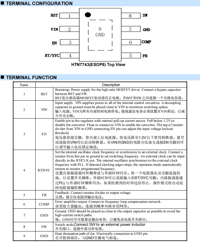 产品名称:HTN7743 4V~42V输入,3.5A同步降压变换器