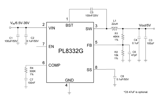 产品名称:PL8332G 同步降压转换器