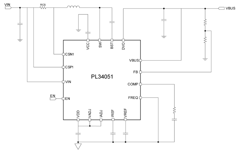 PL34051提供电压控制环路和恒流环路。保护功能包括用于过载保护(OLP)的打嗝模式、过压保护(OVP)。