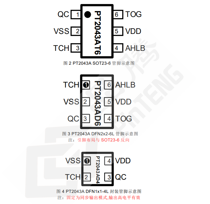 AHLB 和 TOG 选项脚位为锁存类型:上电默认状态为 0,若上电前管脚被接至 VDD,则上电后状态变为 1,且不会有电流漏电。