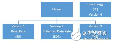 通过把模块进一步划分成不同版本,蓝牙SIG简化了这一前期决策。蓝牙技术版本分为经典版本和低能耗(LE)版本。经济蓝牙版本1、2和3是为数据传输速率优化的。在经典版本中,它分成基本速率(BR)、增强数据速率(EDR)和高速。低能耗蓝牙则把更多的重点放在简单的信息传输上,同时尽可能延长电子器件的续航时间。