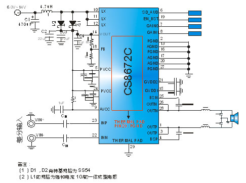 CS8672 内置升压32W单声道D类单芯片广场舞拉杆音箱音频放大解决方案