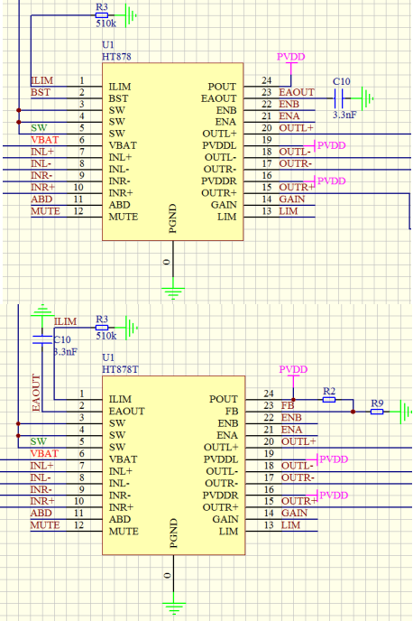 HT878 引脚 BEST 悬空或者接地两种模式下,预留 HT878T 的 R2 电阻位即可实现兼容。