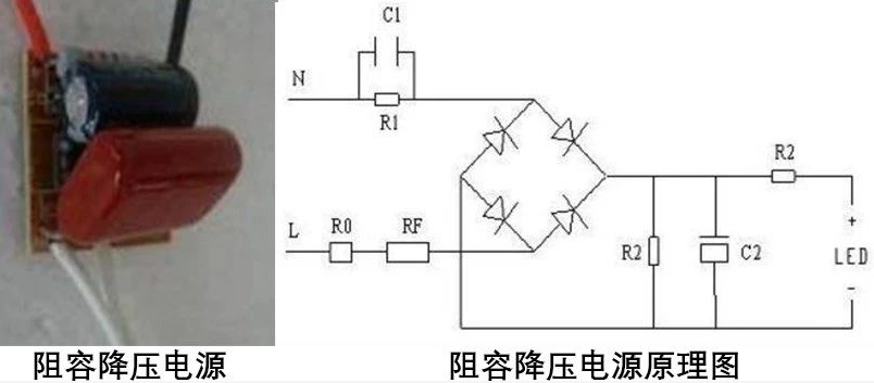 采用一个电容通过其充放电来提供驱动电流,电路简单,成本低,但性能差,稳定性差,在电网电压波动时极容易烧坏LED,同时输出高压非隔离,要求绝缘防护外壳。功率因数低,寿命短,一般只适于经济型小功率产品(5W以内)。