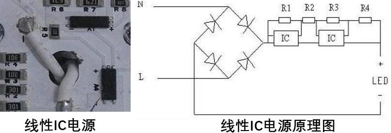 市面上宣称无(去)电解电容,超长寿命的,均是采用线性IC电源。IC驱电源具有高可靠性,高效率低成本优势,是未来理想的LED驱动电源。
