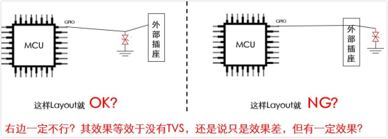 都说接口处的信号要先过ESD/TVS管,然后拉到被保护器件,为什么不这样做效果就不好?那如果受板子实际情况限制,必须这样layout,是一定不行吗?