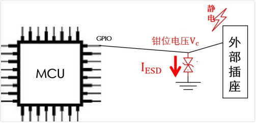 我们设想的是,放电时,静电能量都从ESD管这里泄放掉,而不通过我们的芯片放电,这样才能实现ESD管保护芯片的目的。