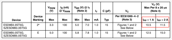我们以3.3V ESD器件esd9b33st5g为例子,如下图。