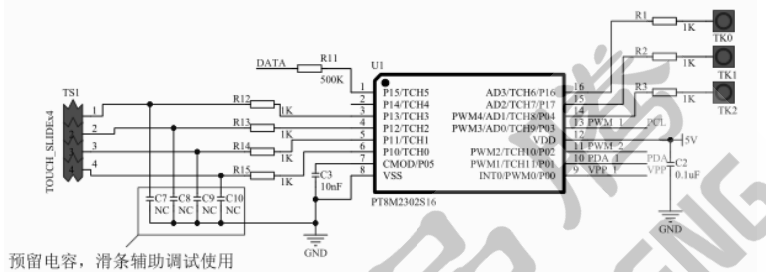 TOUCH 端口串联电阻取值范围为 1~5.1K 推荐值:1K