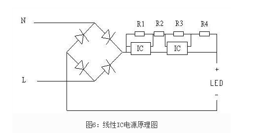 采用一个IC或多个IC来分配电压,电子元器件种类少,功率因数、电源效率非常高,不需要电解电容,寿命长,成本低。缺点是输出高压非隔离,有频闪,要求外壳做好防触电隔离保护。市面上宣称无电解电容,超长寿命的,均是采用线性驱动电源。线性驱动电源具有高可靠性,GX率低成本优势,是未来理想的LED驱动电源。