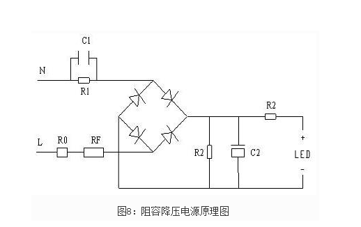 采用一个电容通过其充放电来提供驱动电流,电路简单,成本低,但性能差,稳定性差,在电网电压波动时及容易烧坏LED,同时输出高压非隔离,要求绝缘防护外壳。功率因数低,寿命短,一般只适于经济型小功率产品(5W以内)。功率高的产品,输出电流大,电容不能提供大电流,否则容易烧坏,另外国家对高功率灯具的功率因数有要求,即7W以上的功率因数要求大于0.7,但是阻容降压驱动电源远远达不到(一般在0.2-0.3之间),所以高功率产品不宜采用阻容降压电源。市场上,要求不高的低端型的产品,几乎全部是采用阻容降压电源,另外,一些高功率的便宜的低端产品,也是采用阻容降压电源。