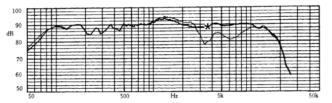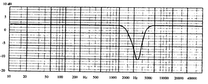 图6是用B&K2012音频分析仪在非消声室条件下测得的银笛YX10-9F二分频音箱的频响特性曲线, 该音箱FQ-15分频器的分频频率为3500Hz, 当低频单元和高频单元的极性全部正接(即低频单元、高频单元的正极分别与分频器低频、高频的输出正极连接)时,音箱的频响特性曲线相当平坦; 但当我们在同等测试条件下将高频单元的极性反接,即将高频扬声器的正极与分频器高频输出的负极连接时,音箱的频响特性曲线立即在分频点附近(频响曲线上标有*标记处)出现了一个很深很宽的谷。