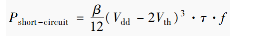 式中,β是晶体管增益系数;τ是输入转换时间,输入信号的斜率越小,功耗越大,并且转换时间越长。