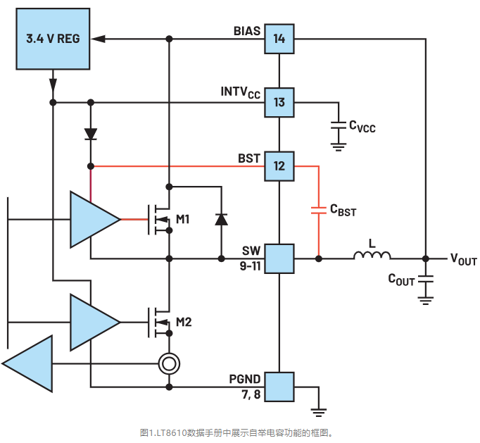 自举电容负责维持顶部N沟道MOSFET正常运行。图1的橙色高亮部分显示了这一点。