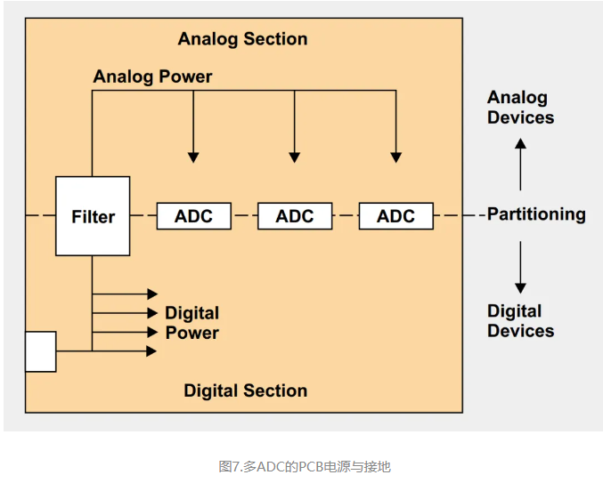 第一种方法常常用于全数字系统,但也可用于混合信号系统,前提条件是数字电路的接地电流足够低,并且散布于一个较大的面积上。