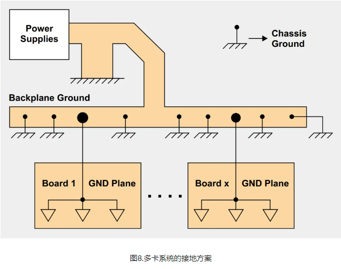 底层的接地层在无数个点连接底板接地,让各种接地电流返回通路四散。它一般指的是多点接地系统图8)。 -