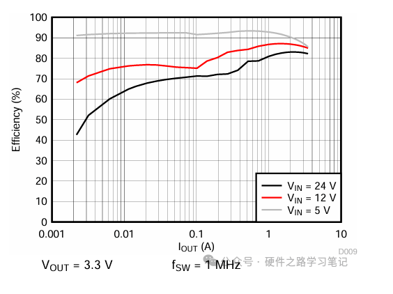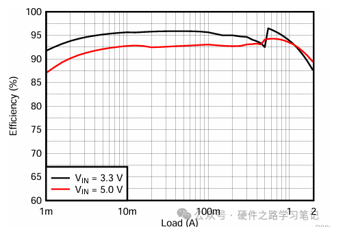 TI的TLV62569整体效率曲线,可以看到即使在10mA负载下效率最高也超过90% ,而普通的BUCK在此负载下基本就没有高效可言,甚至会低于10%。
