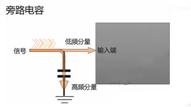 旁路电容,强调使用在芯片输入脚,用来滤除系统不需要的高频干扰信号。