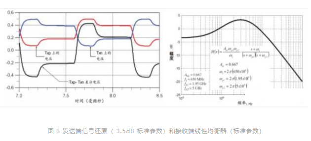 在拥有无限带宽的完美系统中,眼图完全张开。而在实际的系统中,发送和接收阻抗(90欧姆差分阻抗)以及发送端和接收端的所有寄生电容,限制了信号的上升时间/下降时间。这些寄生电容存在于USB3.0收发器内部,和/或PCB外部。不匹配的PCB线路、USB3.0连接器或其他并联电容器等,均会造成外部寄生电容。因此,这些额外的并联电容器必须尽可能小。还必须考虑到USB3.0电缆的低通频率响应(请参阅图2)。为了抵消高频信号的衰减,可在发送端和接收端利用专用均衡器来调整信号。